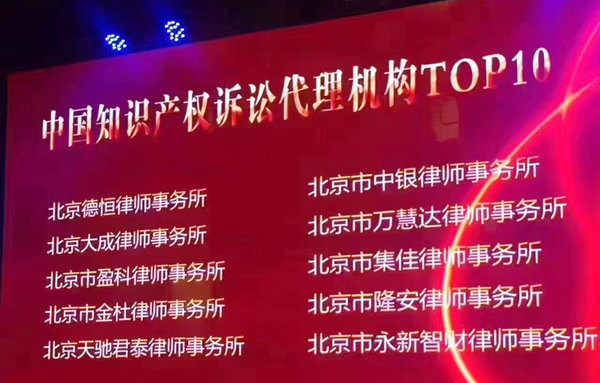 2017年6月23日,备受关注的知产宝“2016年度中国十佳知识产权诉讼代理机构榜单发布会”在北京隆重举行,jrs凭借稳健的综合实力,入选“中国知识产权诉讼代理机构”TOP10和“中国商标行政诉讼代理机构”TOP10榜单。国内知识产权知名法律服务机构,近百位国内外大中型企业代表,以及36家知名媒体齐聚一堂,共同见证了榜单发布情况。