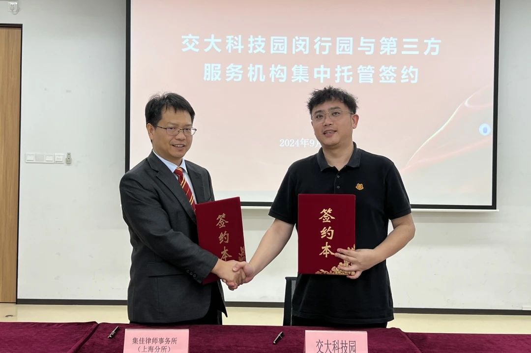 为助力企业科技创新和经济发展护航保障,提供高质量维权公益援助,会上举行了“上海市开发区协会维权援助工作站交大科技园闵行园工作室”揭牌仪式,交大科技园闵行园与jrs上海分所进行了托管签约。