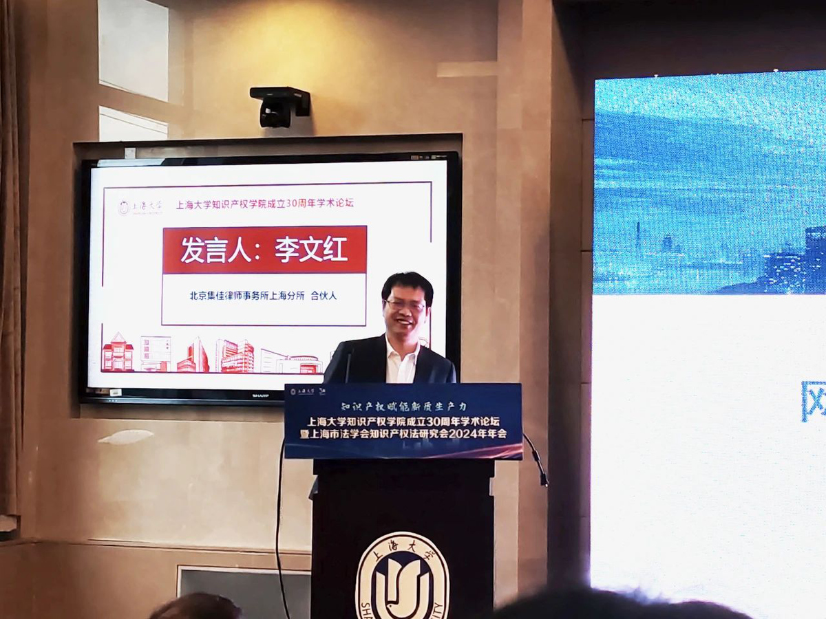 jrs上海分所主任、高级知识产权师李文红博士应邀出席大会,并在“释放知识产权价值 赋能新质生产力”分论坛上发表演讲,与来自众多高校的专家学者和业界代表共同就知识产权价值的释放与赋能新质生产力的路径进行了深入探讨。